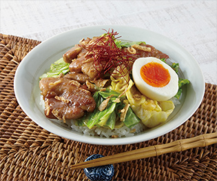 紹介メニューの豚しゃぶの玉ねぎあいがけは、スライスした玉ねぎをさっと湯通ししています。この方が、生よりも甘みが出るからです。玉ねぎは油との相性もいいです。豚玉リングはじっくり加熱することで豚肉の脂を甘みとうま味に変えています。