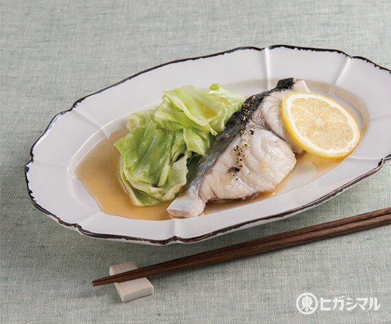 メインのさわらをキャベツと一緒に電子レンジにかけるだけ。栄養バランスもバッチリです。さわらはふっくら、まろやかな淡口バターしょうゆ味で、「時短おかず」とは思えないごちそうに。